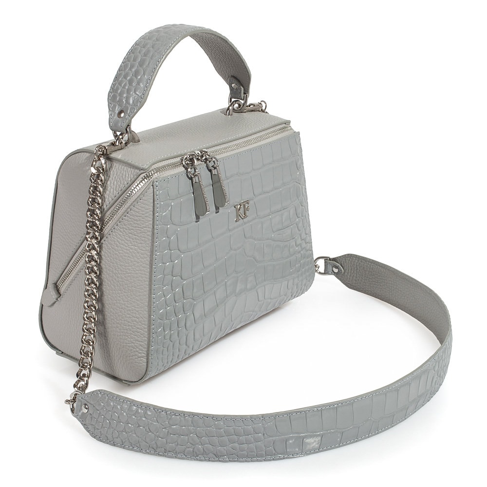 Leather Top Handle Bag, Gray Leather Handbag Top Handle, Women's Leather Bag KF-3512