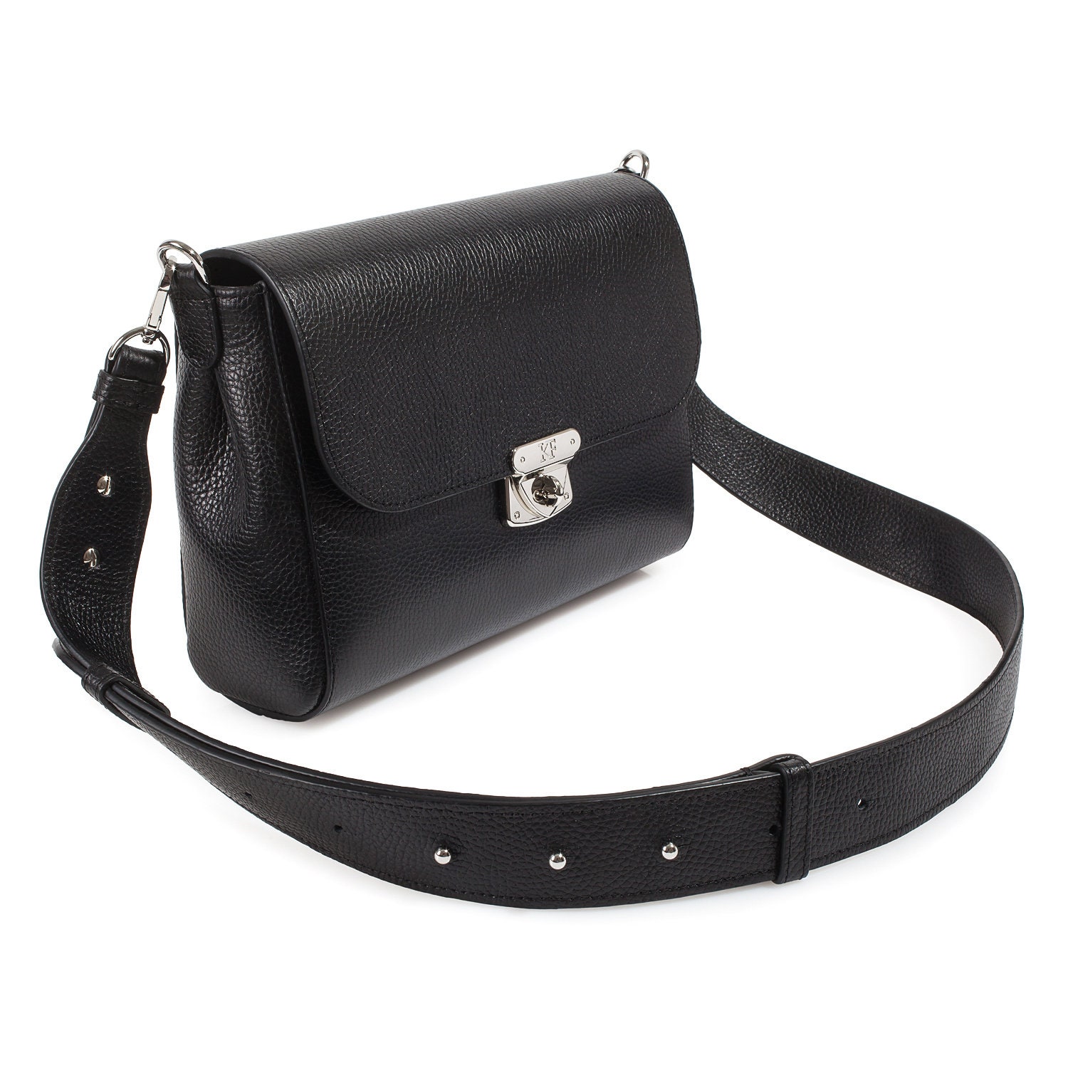 Black patent genuine leather snake print woman shoulder bag from ukrainian designer Katerina Fox. Fashionable and elegant modern bag KF for bright girls and women. This bag is able to attract attention and highlight your exquisite taste. The internal space of a bag is equipped with one spacious compartment and one patch-pocket. The bag is closed with a clasp. There is a long handle that allows you to wear the bag on the shoulder. The kit also includes a storage bag.