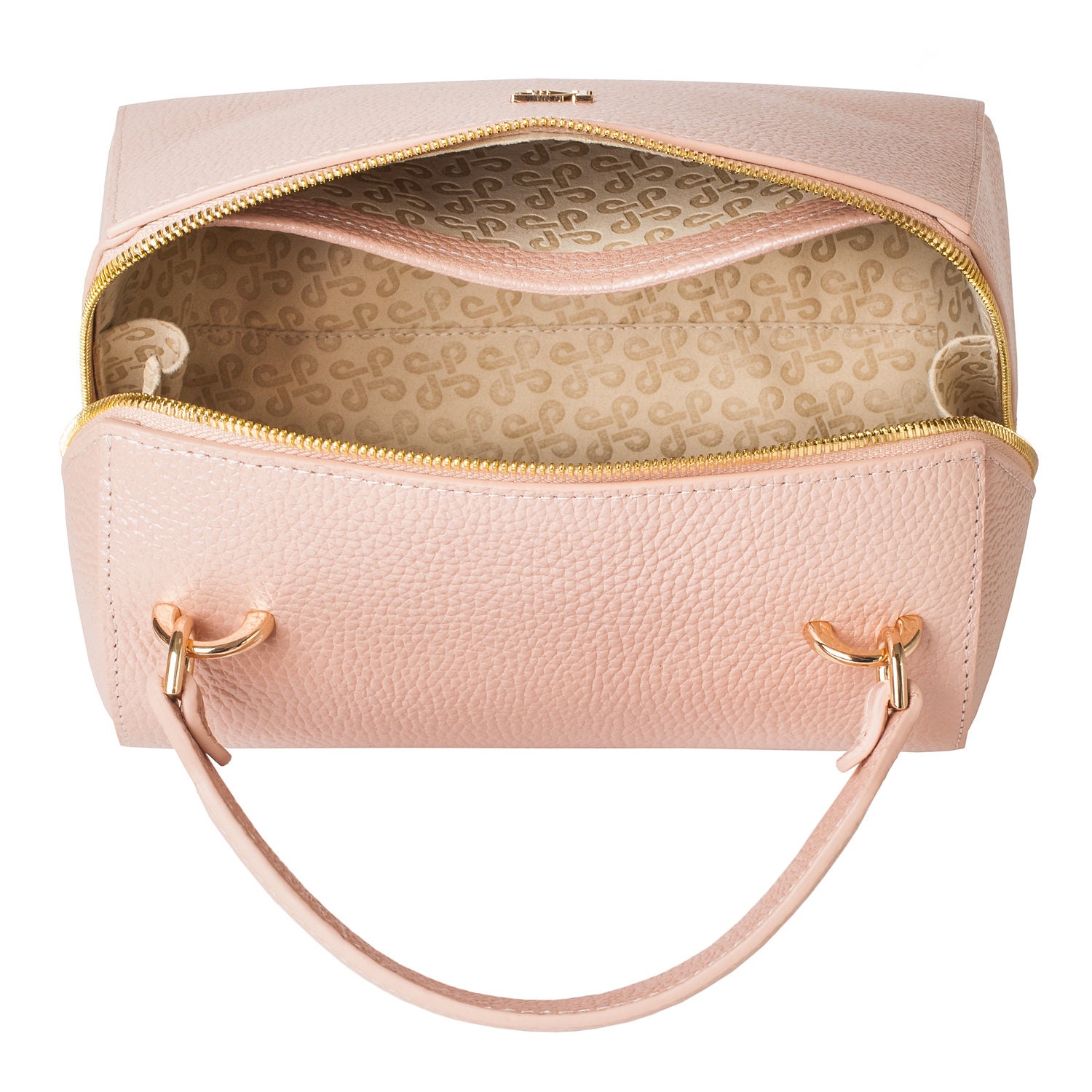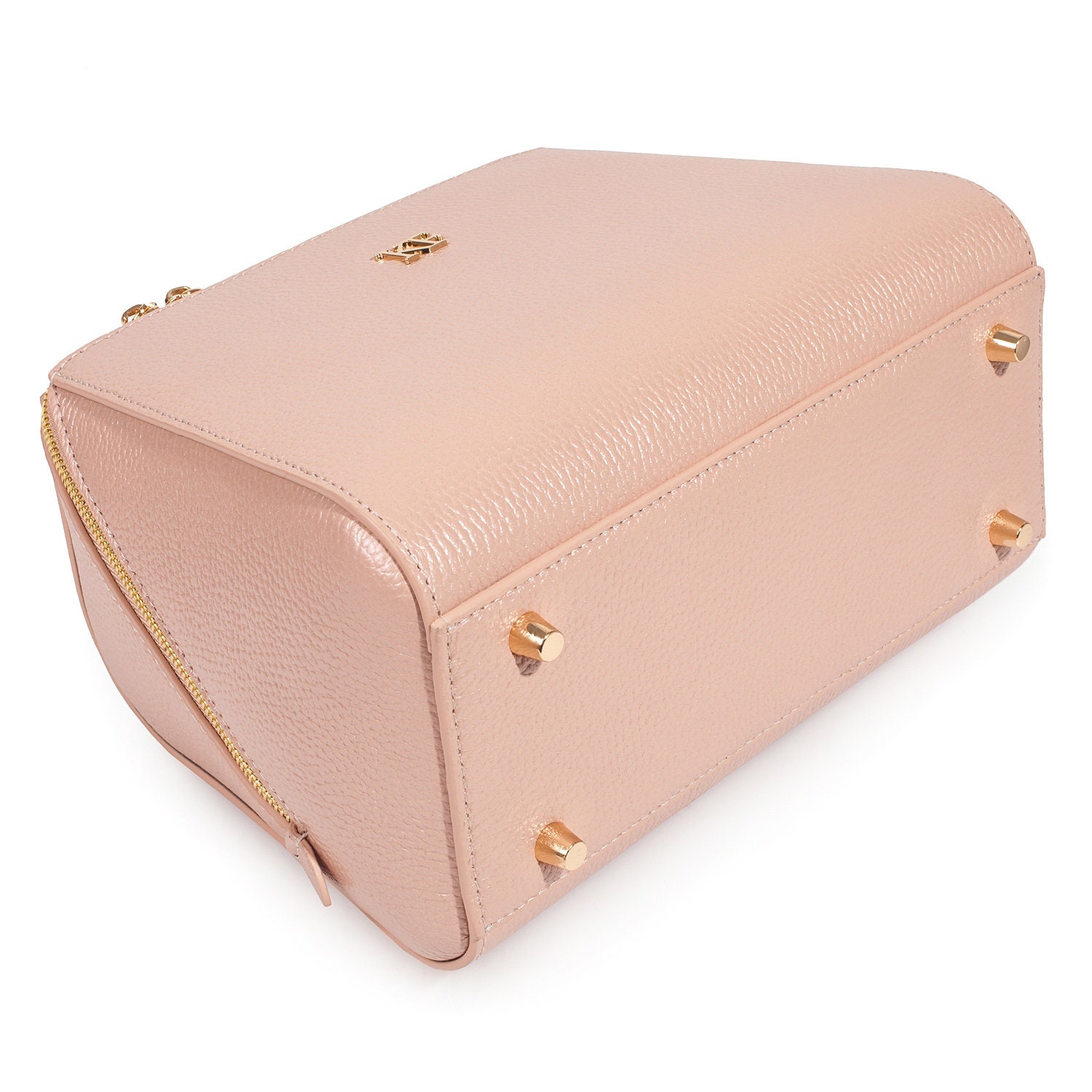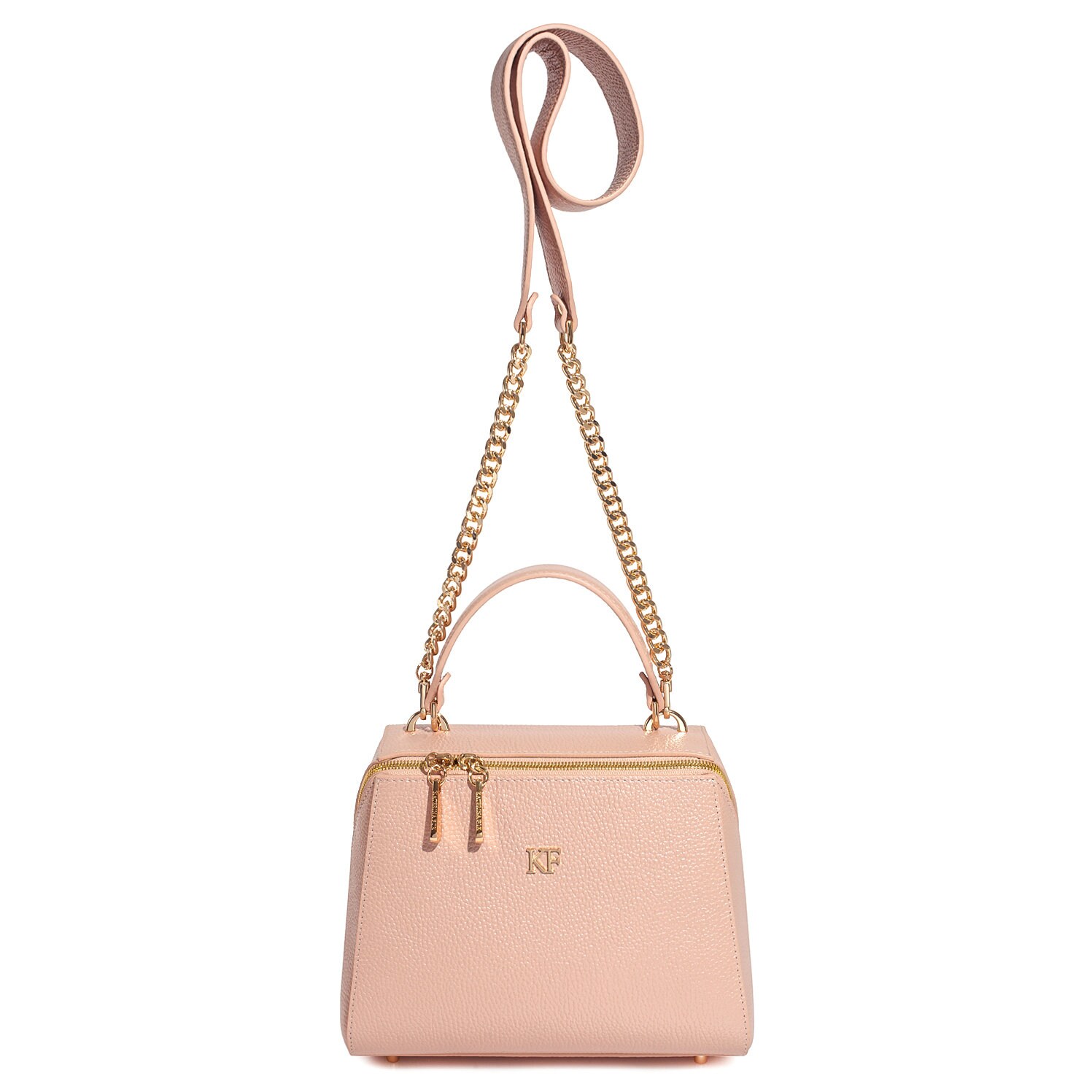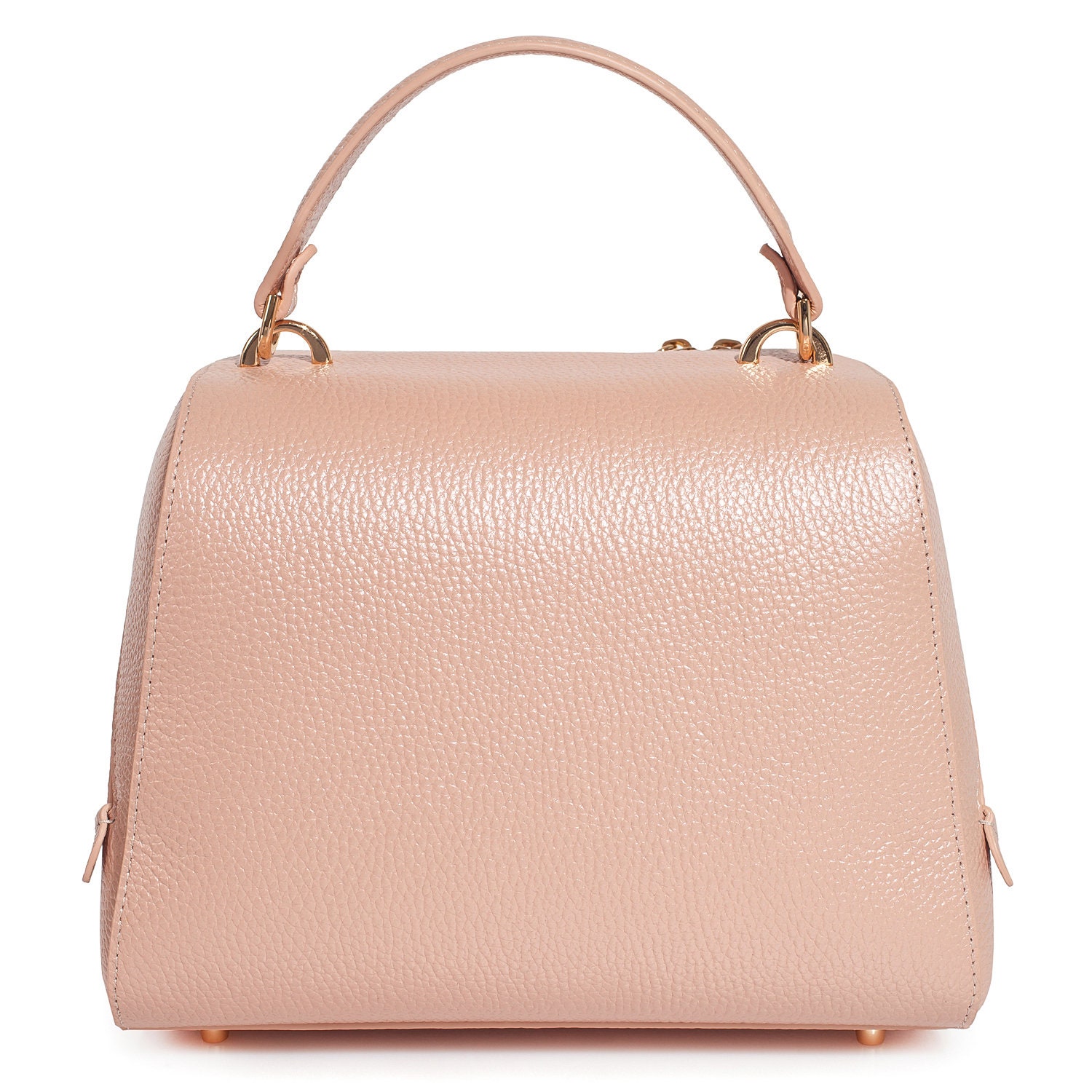 Beige pearl genuine leather handbag from ukrainian designer Katerina Fox. This model is designed for women who appreciate the sleek design combined with functionality and comfort. High-quality and reliable hardware ensure long service bags. The internal space of a bag is equipped with one spacious compartment and two patch-pockets and one zipper pocket. The bag is closed with a zipper. The bottom of the bag is protected with metal legs. There is a long handle that allows you to wear the bag on the shoulder. The kit also includes a storage bag.